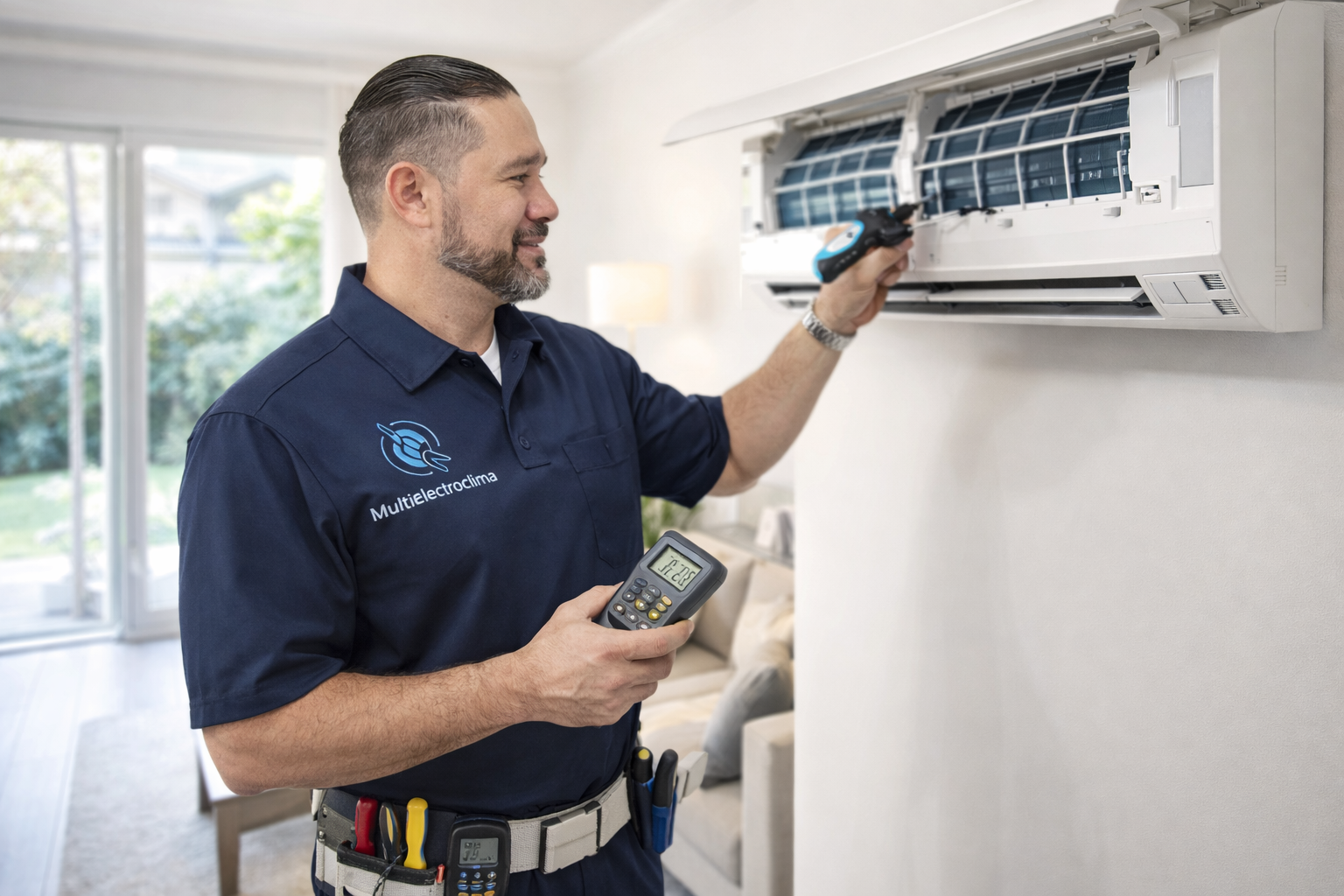 Instalación completa de aire acondicionado split de pared. Montaje profesional en 24h con certificado.